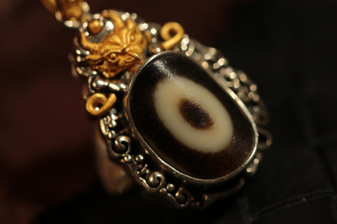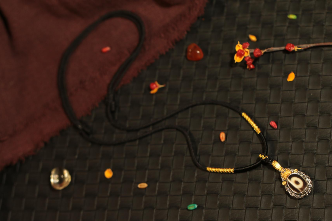 Tibetan sacred object - Gold-plated dzi bead clavicle chain(Unique ID: cp-2-2575)